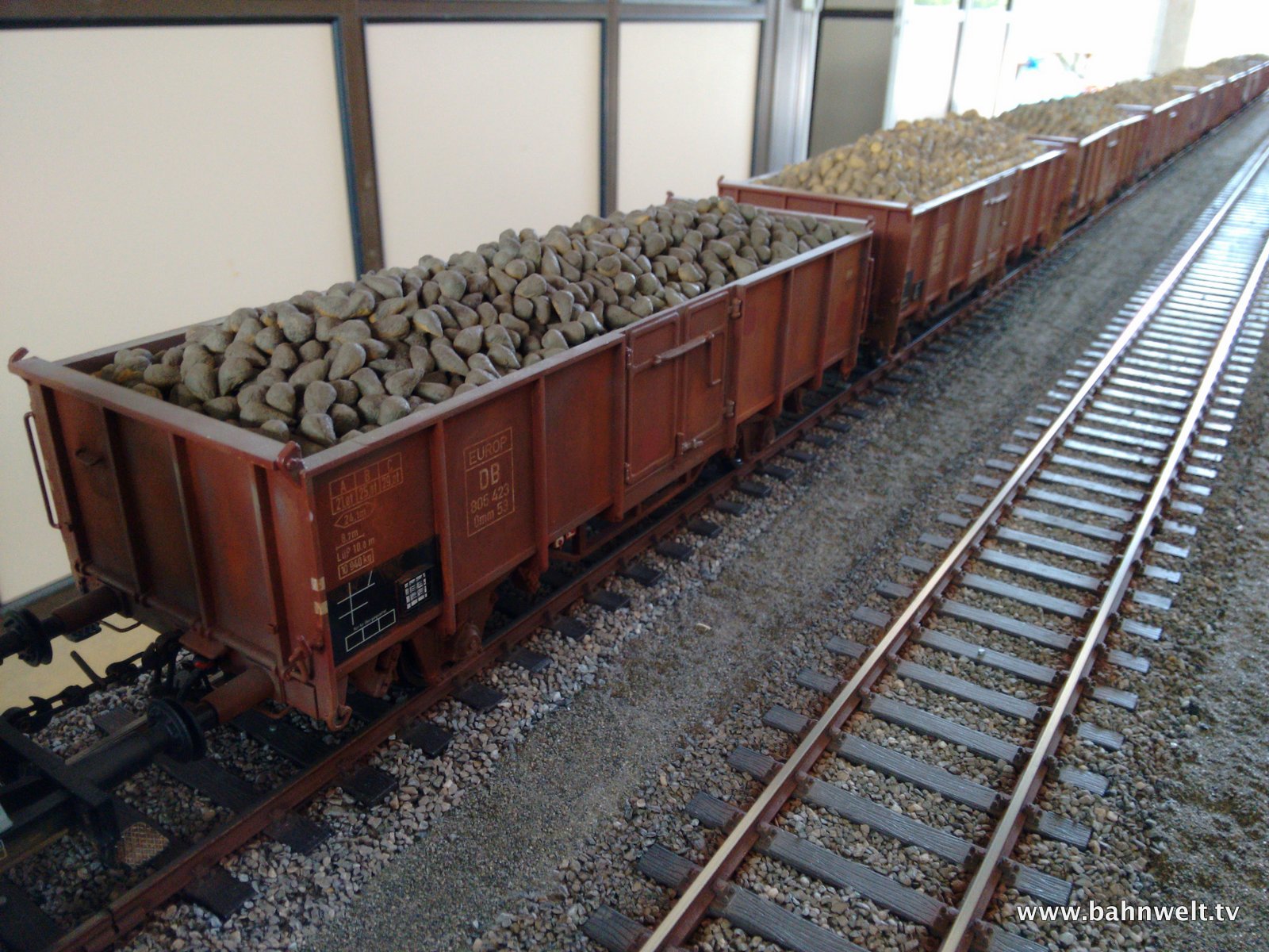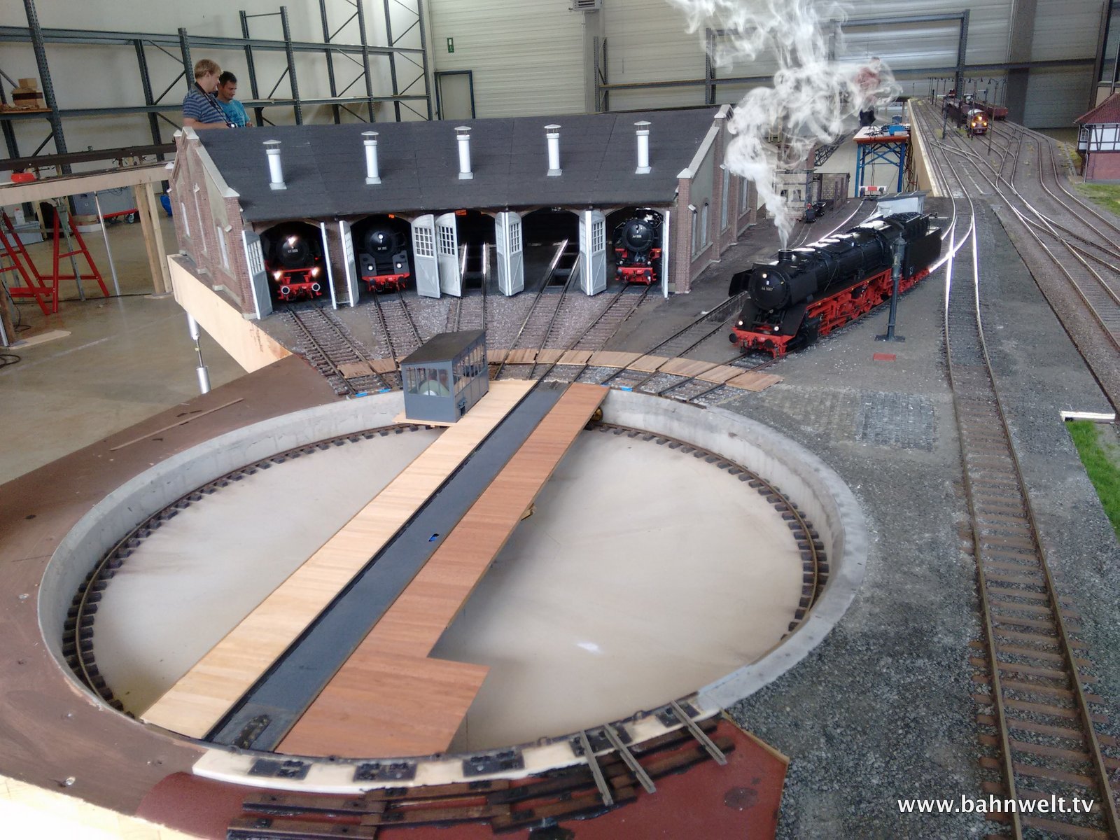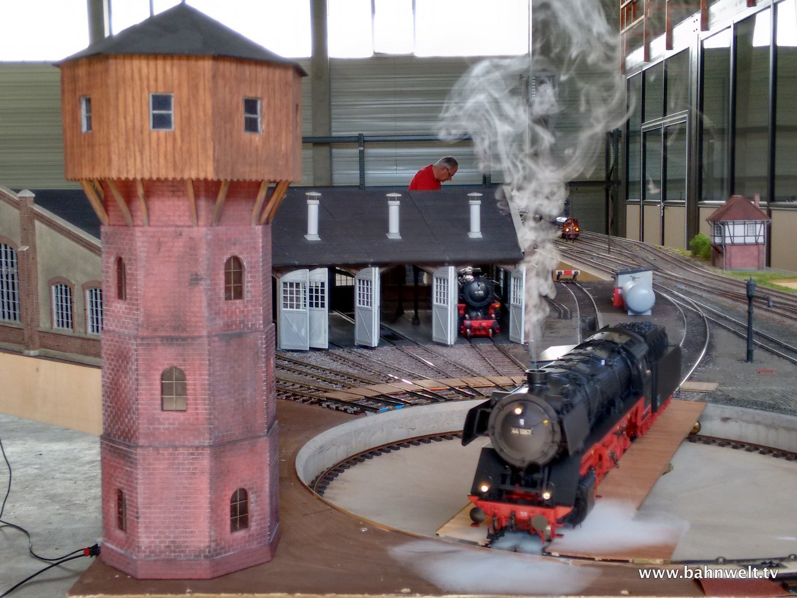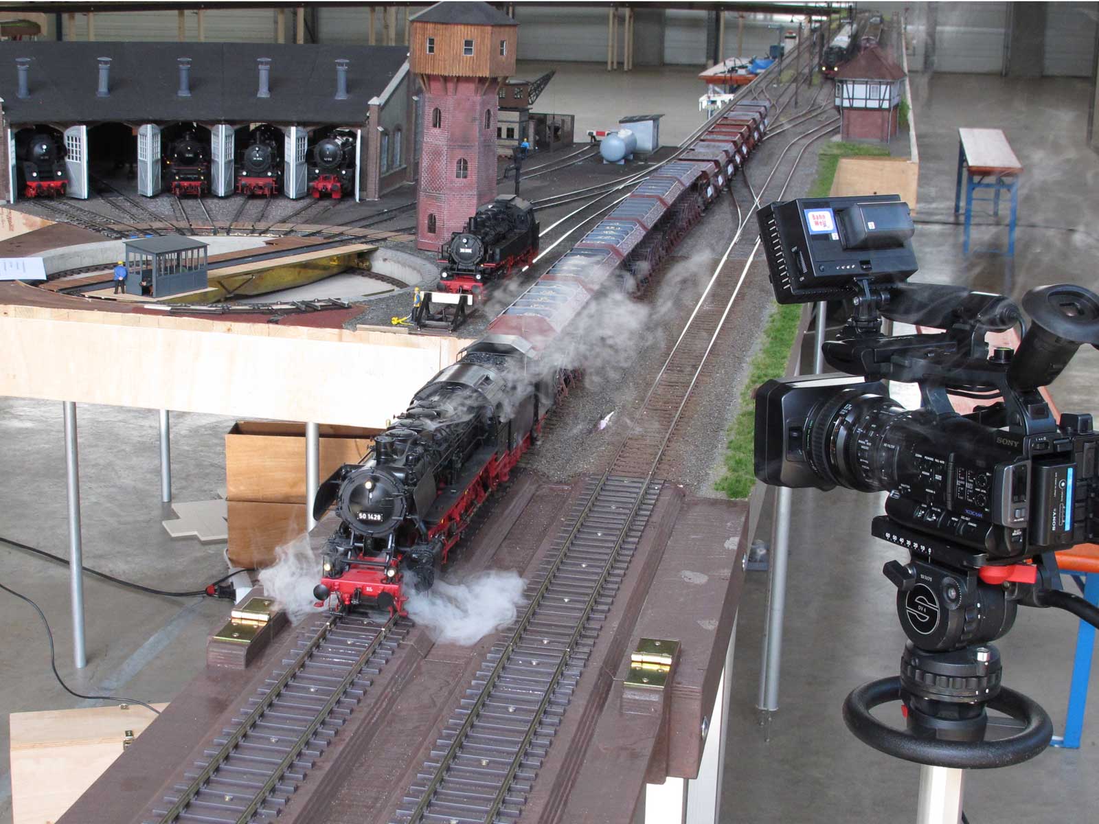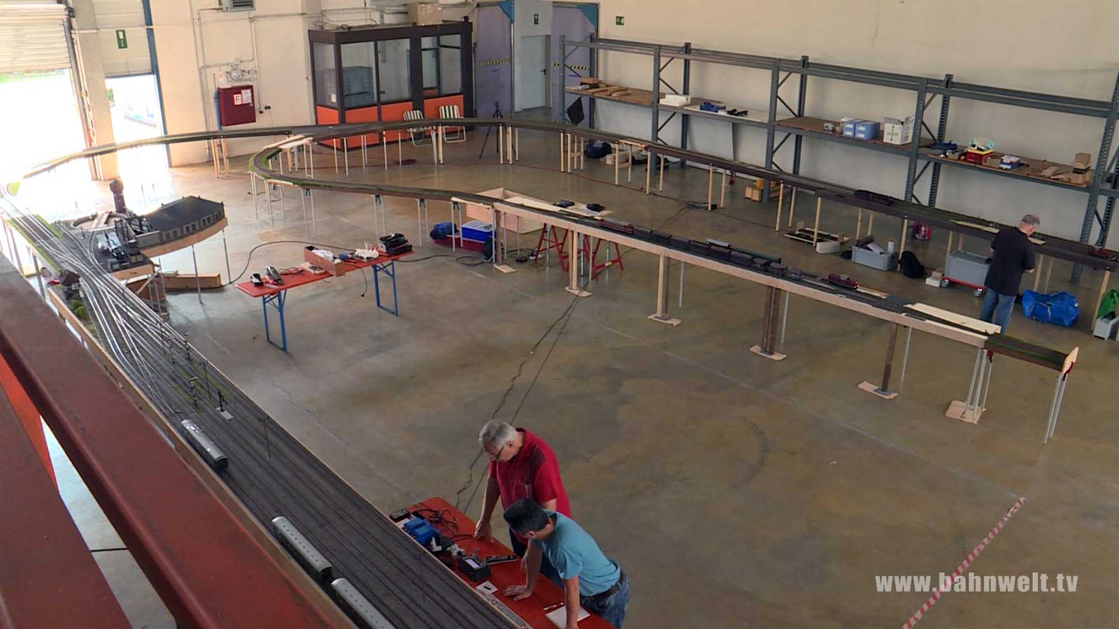 Modellbahner vom Stammtisch der EinsBahner Bayern hatten sich für ein verlängertes Wochenende um Maria Himmelfahrt im Unterschleißheimer Industriegebiet bei München eine 900 qm große Halle gemietet, um auf über 50 Modulen Ihren Spur 1-Schätzchen wieder richtig Auslauf geben zu können. Am Freitag wurden bis spät in die Nacht die Module aufgebaut. Manche hatten dort sogar auf Feldbetten übernachtet. Danach konnte drei Tage lang ungetrübtem Fahrspaß gefrönt werden. Ein Kamerateam war für die Modellbahn Umschau vor Ort. Zur Vollbildansicht auf ein Foto klicken.